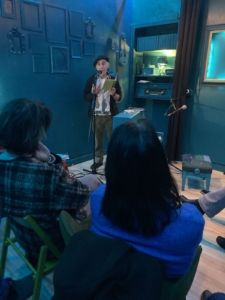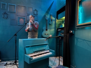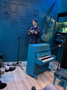 Het eerste poēziecafé in Maarssen op de Landelijke Gedichtendag 2026 was een succes. Zo’n vijfentwintig mensen (meer passen er echt niet in het huisje zonder dat je op elkaars tenen gaat staan en elkaar de adem beneemt) luisterden naar het programma. Een combinatie van muziek en poëzie. Zangeres Lucienne Lardenoye is bezig met haar eerste album en paste uitstekend in het programma. Ze vlocht haar poëtische Nederlandstalige nummers op zeer gevoelige wijze tussen de woorden van de dichters. Gezeten achter de kleinste piano van Stichtse Vecht en omstreken. Het publiek hield de adem in en liet heel stil de teksten tot zich komen. Over de nacht, over iets dat niet vandaag is en liefde dat zich als elastiek vouwt.